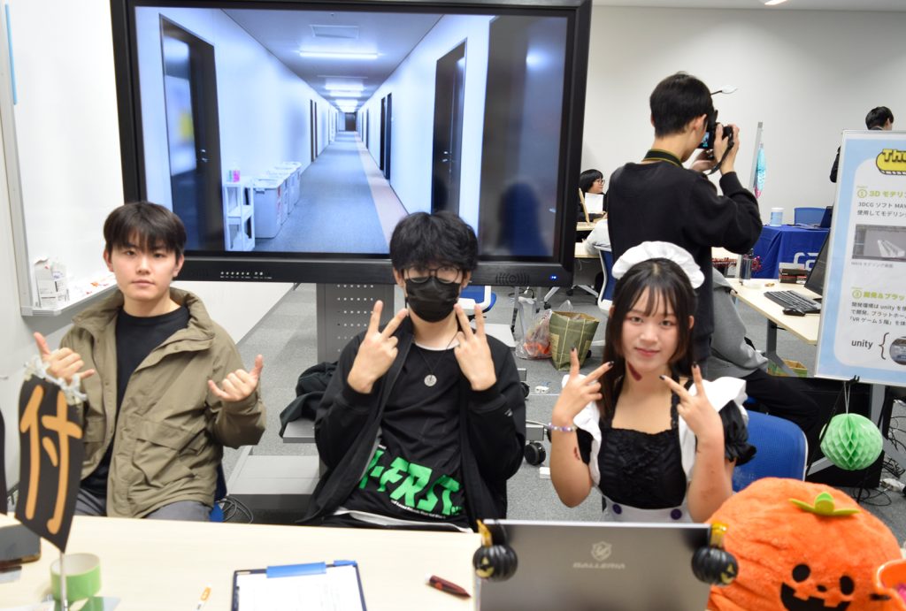 実際に制作したコンテンツを体験してもらい、直接開発者に感想を話したり質問したりと、賑わっていました。特に1年生は来年の自分たちのことを考えて熱心に質問する姿が見られます。