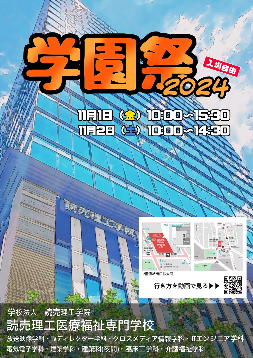 2024年11月1日(金)、2日(土)読売理工医療福祉専門学校の学園祭2024を開催します。